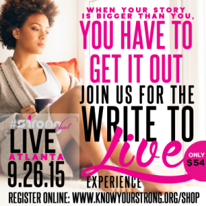 Want more inspiration that can help you journey and get your story out? Join us for STRONGchatLiveAtlanta on September 26, 2015 from 12:00p-3:30p! Let’s learn to write to live!!!